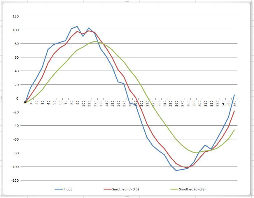 Yout = d*Yprev + (1-d)*Xin; // Output n (Filtered)