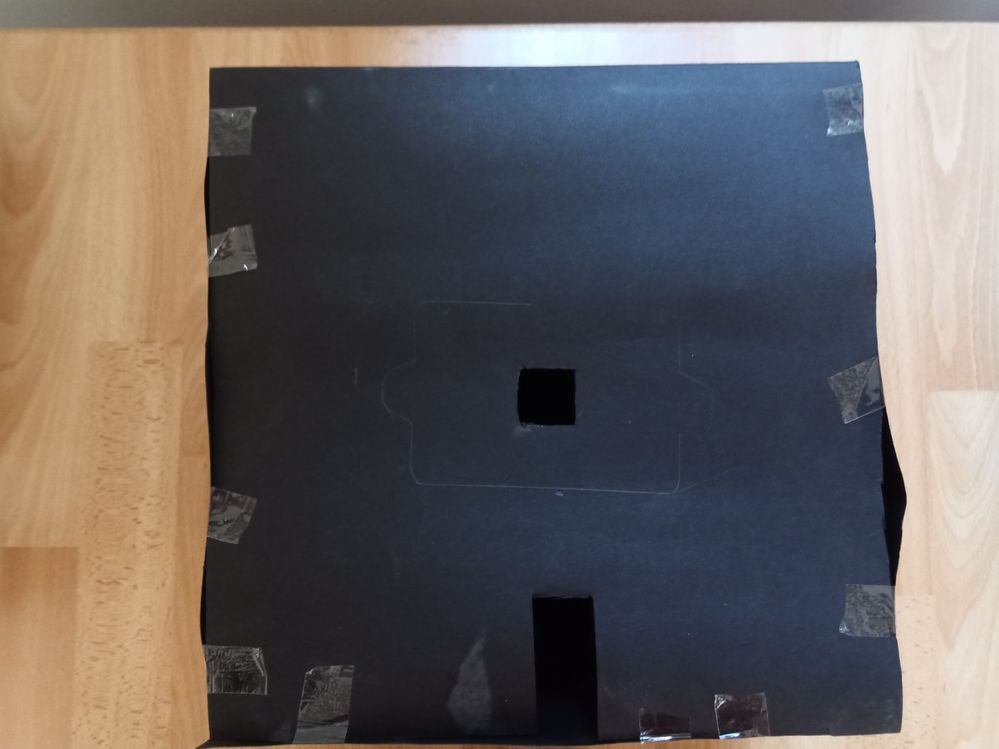Following this topic, I've made a box out of black paper, perhaps it work for calibrating xTalk.