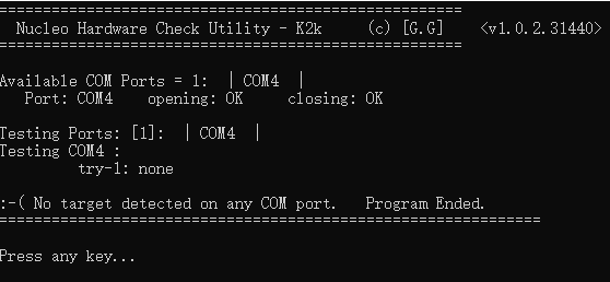 The output of HwCheckUtility.exe shows that it cannot detect the Nucleo-Board. So there is indeed an issue.