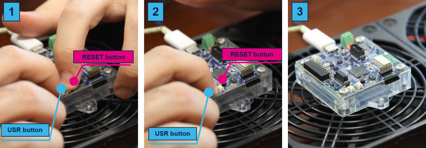 The user can now click the RESET button. The board will boot with the newly installed firmware running.
