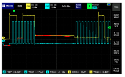 It's also odd how the data and clock lines seem to rest at values other than 0 and 3.3V at various points, which indicate maybe multiple devices are trying to drive those pins.