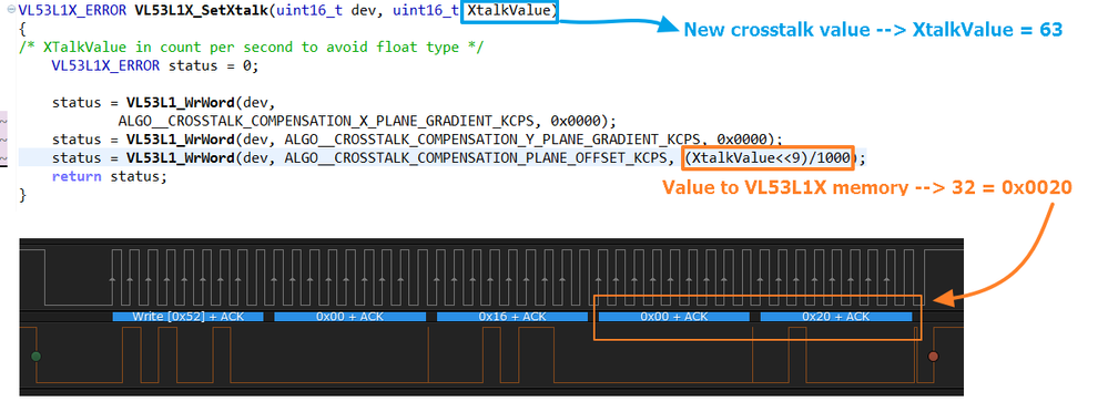 After that operation (xtalk<<9/1000), xtalk = 63 cps is converted into 16bit register = 0x0020. Sending 0x0020 causes my sensor to return INCORRECT measurements.