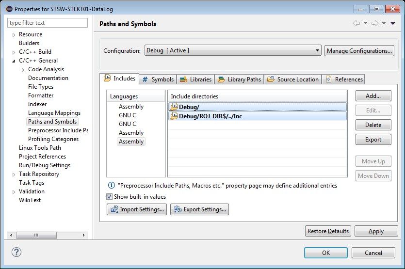 I was trying to Build a project for the 'sensortile - STEVAL-STLKT01V1' using 'System Workbench for STM32' and I get this error message 'Invalid project path: Include path not found (C:\STSW-STLKT01_V1.3.1\Projects\SensorTile\Applications\DataLog\SW4STM32\STM32L47xx_SensorTile\Debug\Inc)'.