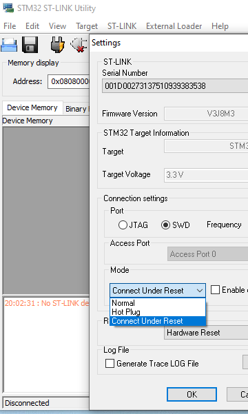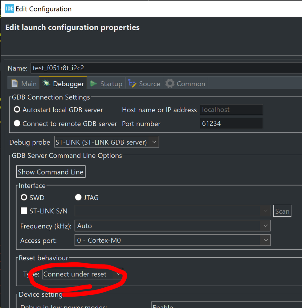 And here's my question - how to modify Startup Script (attachment) so that ST-LINK/V2 would upload (or debug) new software using NRST pin (Connect Under Reset in STM32 ST-LINK Utility works like a charm)?