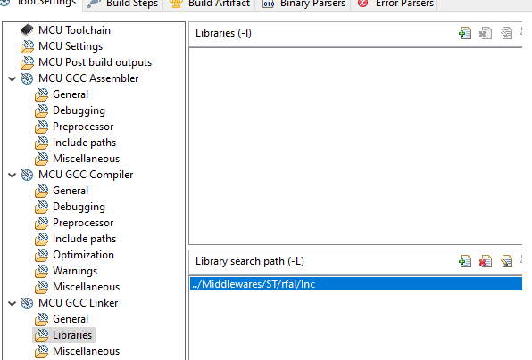 there is no specific linker option or lib/libpathc/etc.. Make sure rfal_nfc.c is compiled and that rfal_nfc.o is in the list of objects being linked by the linker.