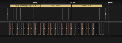 I first performed a write-then-read operation on register 00 using I²C timing.