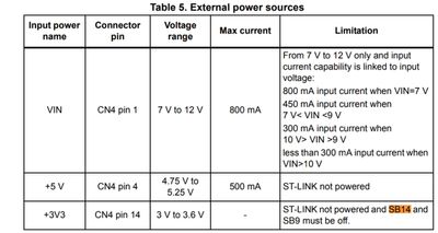 I need to test power consumption on NUCLEO-L432KC with UART working on high baud rate. I've removed SB9 and SB14 to do so. Board is powered by external 5V source. While trying to flash following the Chapter 6.4.2 (External power supply inputs) from User Manual I get: