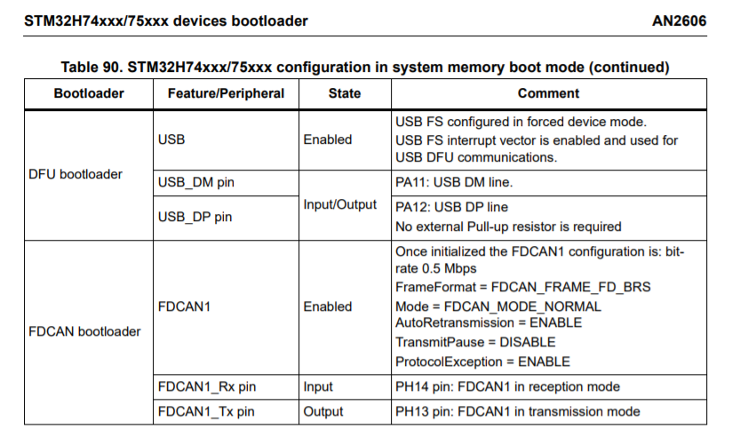 I verified the H745's ID reported at address 0x1FF1E7FE is 0x90.. which suggests the CAN bootloader is supported.