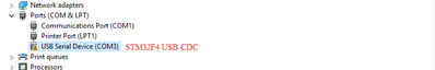 Hardware & HAL: STM32F767ZI Nucleo 210MHzCube MCU Package 1.15Application USB (12Mbit FS) to UART bridge 115200 baud, 8bit 1s 1s, full duplex test (RX-TX bridged)Tested:The test on /dev/ttyACM0 is running without any errors on all packet 2-64KB sizes...