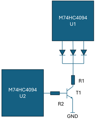 Because when led1 led2 led3 is active, the (2nd) 74hc4094 integrated circuit on the right has to give cathode information to all leds.