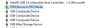 I want to use internal bootloader with stm32f103 mcu. I downloaded and installed dfuse tool. My PC is windows 10 and I also tried with windows 7 result is same.. DP pin is pulled up with 5V.At device maganer It didn't work properly as it seems on the picture. Can anyone help me? The trouble may be about driver or windows10 or hardware or MCU model?