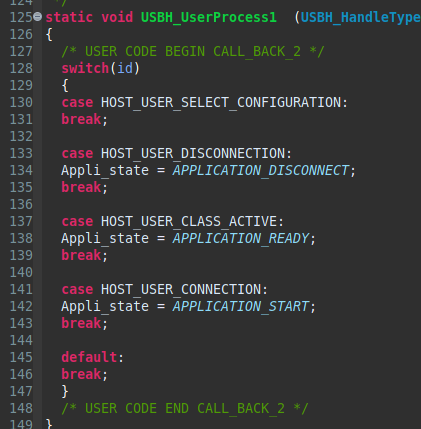 Here, I tried with USB host method this example code USB CDC Device and HOST in STM32 » ControllersTech , the problem is the "Appli_state" is not entering the "Application_Ready " state, it is present in Application_Idle state. I am not sure, what am I missing. Please help me.