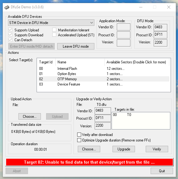 3) Is DFU file generation or programming method store anything in to OTP memory of STM uc.