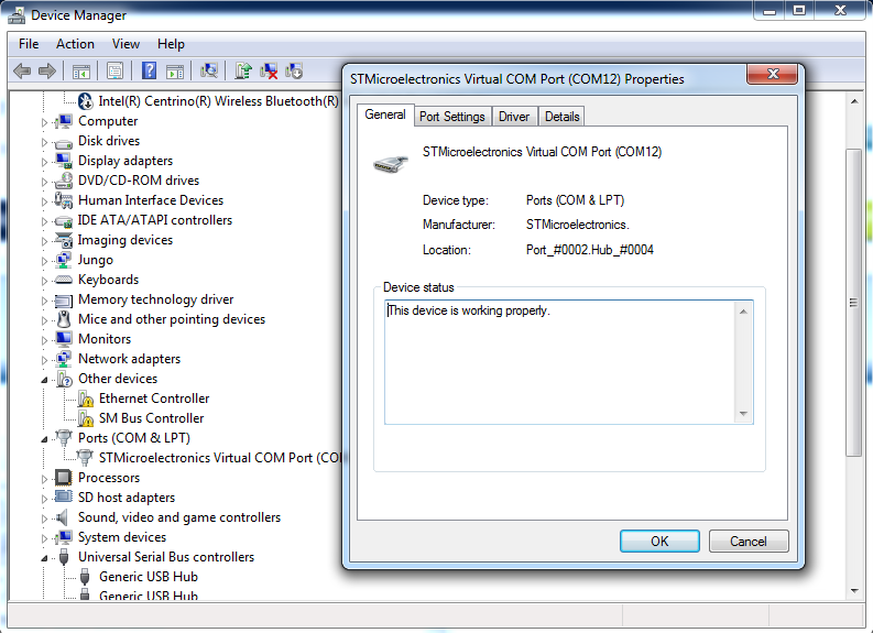 '' Start with the working USB CDC example! You can download the example code for your board from here : http://www.st.com/web/en/catalog/tools/PF259446# There is a USB example. Unfortunately, it is a HID (Human interface device). Start with this and understand this first!2014-02-24 8:41 AM