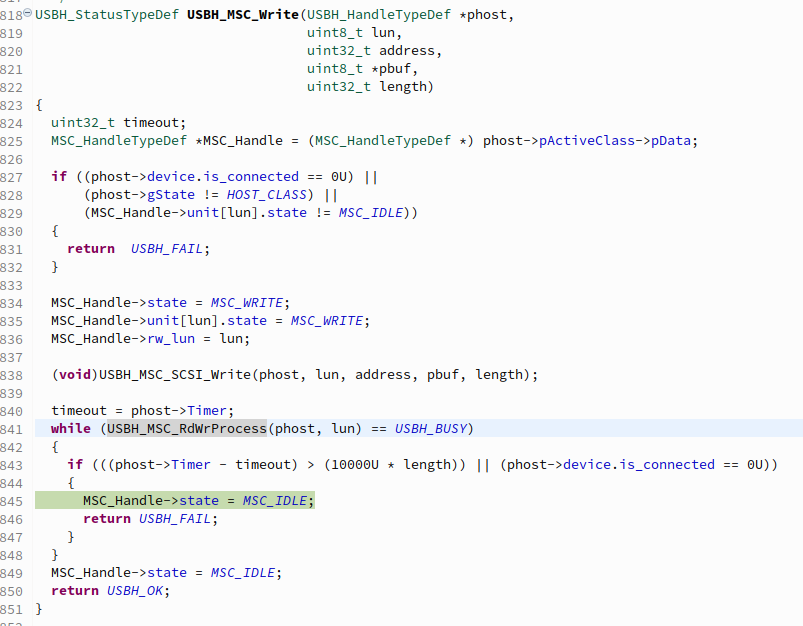 MSC_Handle->unit[lun].state is MSC_WRITE