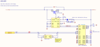 For basic data transfer and fixed power supply, UCPD controller is not necessary but you need to check your hardware setup like the following example implementing TCPP port for sinking power connected to CC lines and enables VBUS power path.