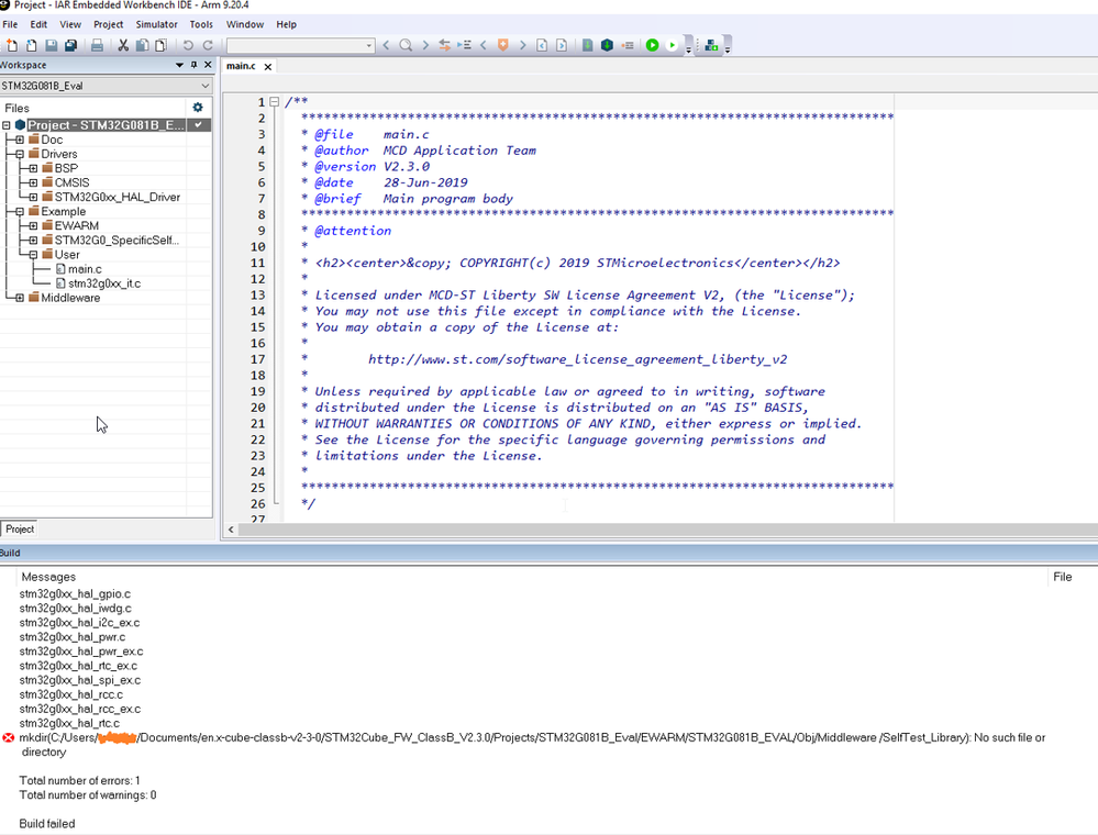 Currently I try to compiler(clean and build) X-CUBE-CLASSB project for MCU self test function. I got error as below Does anyone know what wrong or missing setting something? I had try compiler in two project , all get error.