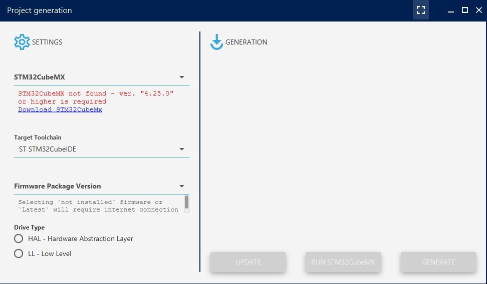 I would like to use ST Motor Control Workbench for BLDC FOC Control. I have installed version 5.4.4 and used an example project to generate code. However, the workbench doesnt generate code and gives error ("STM32CubeMX not found - ver. "4.25.0" or higher is required"). I had already STMCubeMx version 5.6.1 before installing motor control workbench and I am able to generate code using CubeMx alone. Is there a way to link these two programs manually?