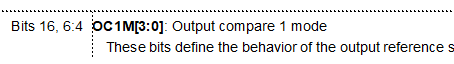 In the RM0316 file, on page 658, talk about "Bits 6:4 OC1M: Output compare 1 mode". That are 3 bits, but in the description it shows 4 bits. Whats wrong here?: