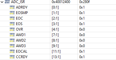 Looking at ADC registers is intrusive - some bits are cleared by reading the data register.