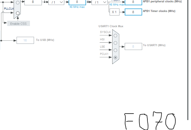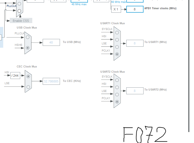 Issue : USART1 and USART2 are required. The clock of USART1 can be configured by CubeMX. However, it is not possible for that of USART2