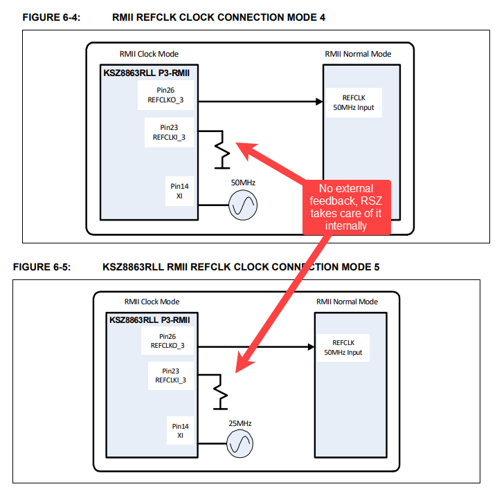 @JR5, you'll notice if you look below the table of the image you shared, you aren't using the internal RMII feedback of the KSZ as suggested by @LCE in their suggestion: