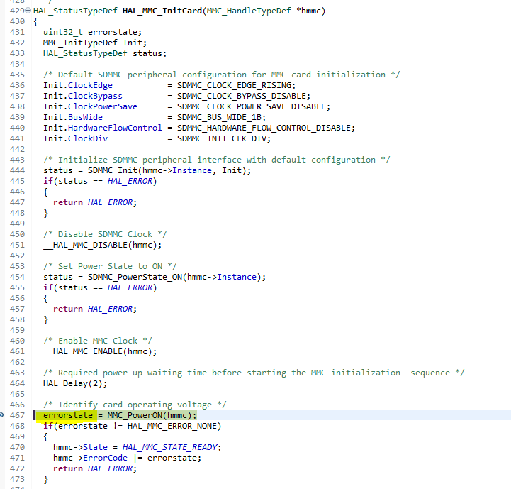 My current step that I'm stuck is where the "MX_SDMMC1_MMC_Init" fails.