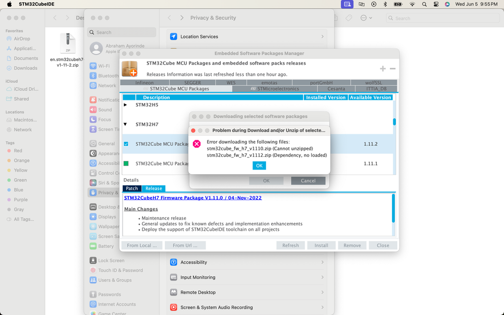 I am attempting to install the appropriate software packages so I can use my STM32H723ZG.
