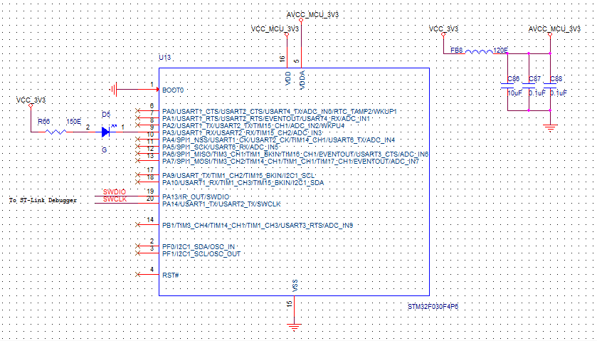 But I'm not able to get the output. Boot0 pin pulled low for internal flash boot loader.Added Corresponding ST pheripheral library(gpio,misc,rcc file), CMSIS(core_cm3,system_stm32f0xx) and Startup file.LED connected to Port A_Pin_9. I'm using ST link/v2 for programming. Do I missed anything? or any issue with code?#include <stm32f0xx.h>#include <stm32f0xx_gpio.h>#include <stm32f0xx_rcc.h>GPIO_InitTypeDef Gp;#define GreenLED_Pin GPIO_Pin_9#define LED_GPIO GPIOAvoid delay(unsigned int time) { for(time=0;time>0;time--); } int main(void){ RCC_AHBPeriphClockCmd(RCC_AHBPeriph_GPIOA,ENABLE); Gp.GPIO_Pin=GreenLED_Pin; Gp.GPIO_Mode=GPIO_Mode_OUT; Gp.GPIO_OType=GPIO_OType_OD; Gp.GPIO_Speed=GPIO_Speed_Level_1; GPIO_Init(LED_GPIO,&Gp); while(1) { GPIO_SetBits(LED_GPIO,GreenLED_Pin); delay(10000); GPIO_ResetBits(LED_GPIO,GreenLED_Pin); delay(10000); }}Solved! Go to Solution.