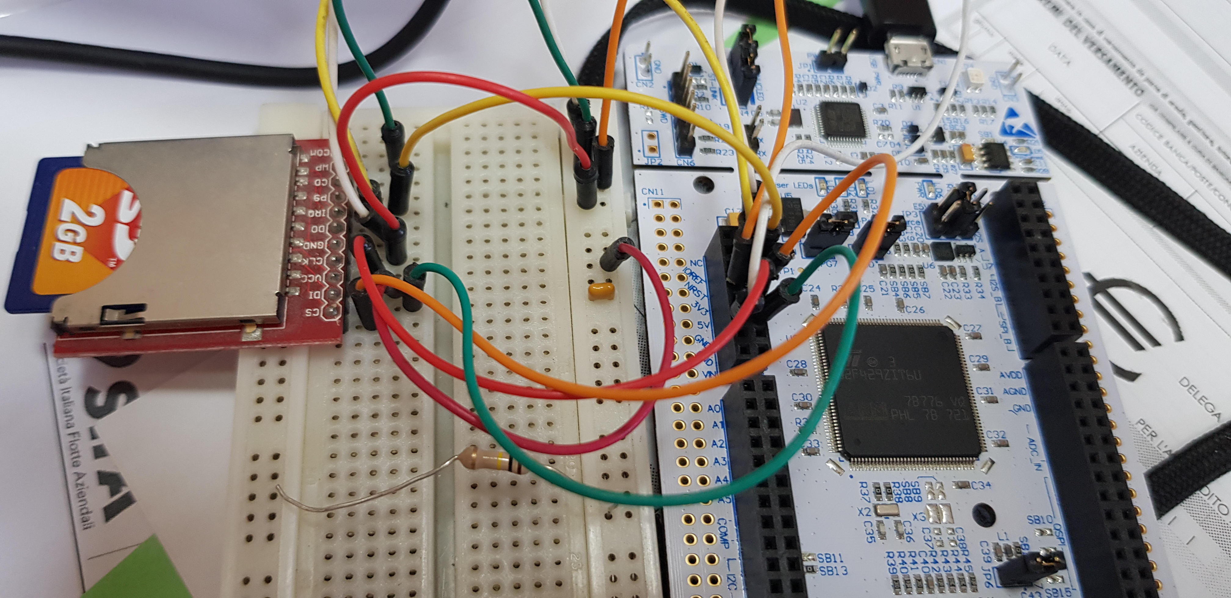 I’m new to this forum and to stm32 board. I’m trying to connect an SD Card to my board NUCLEO-F429ZI but I’m having some problems with it. I use STM32CUBEMX to create the project using the standard peripherals settings. I put SDIO in SD 4 bit interfacing mode. I do not change anything in clock configuration. I connect the SD Card directly to SDIO PIN without any resistors as in picturehttp://www.openstm32.org/dl422?display