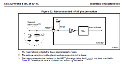 Looking at the datasheet. for the STM32F401 Paragraph 6.3.17 NRST pin characteristics Figure 32 shows just a capacitor.