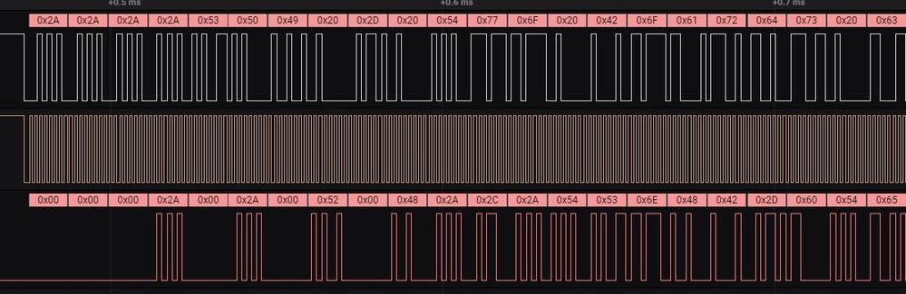 After the Transfer is completed I am copying the received Byte into the Buffer for the next TX Byte and waiting for the next Transfer again.