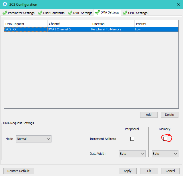 I am new to STM I started with the STM32100E-Eval Board which features an STM32F100Z3 MPU and a STLM75 temperature sensor, which connects to the MCU via I²C2. Using STM32CubeMX, I set up the hardware end enable I2C2 and corresponding I2C2 event interrupt. Now, I try to read the temperature value in no-blocking mode. Unfortuately, I haven't found any application notes or example applications using the HAL no-blocking mode yet. I've tried the following code: