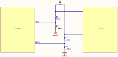 So, the method of converting MISO from 5V to 3.3V is feasible, but if it's MCU SCK from 3.3V to 5V for the ADC, might need a different approach.