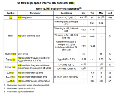 tying to find what frequency the hsi is at startup and normally i search the datasheet for clocks and startup but this returns nothing in the datasheet for the stm32h753bi mcu only thing i see is that it has 4 clocks and it says the hsi is 64mhz is this it