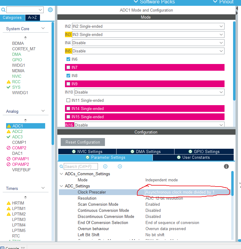 Sorry for my bad English. I am using NUCLEO STM32H743ZI2 with ADC multi-channel. I am using 3ADC: ADC 1, 2, and 3 independent mode triggered by TIM1CH1