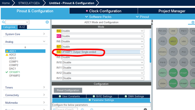 I'm trying to use the internal op-amps of an STM32L471 to amplify a small current-sense voltage before measuring it via ADC. This figure from the relevant product training resource shows an internal arrow labelled "ADC," coming from the op-amp output. I assumed this meant the output from an internal opamp could be internally routed to the input of an ADC.