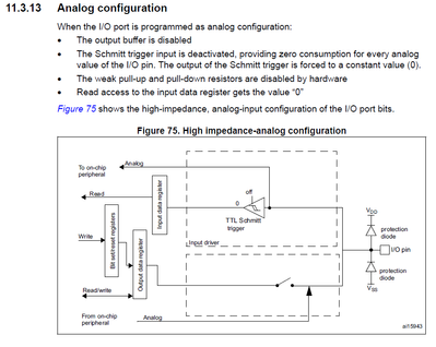 After reset it's set to Analog input and it's in high impedance state (from RM0433):