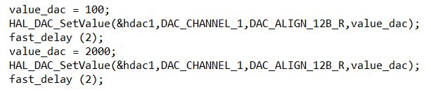 But, more importantly Cube/HAL functions are bloated, so HAL_DAC_SetValue may easily execute hundreds of instructions until it gets to write the value to DAC register and return.