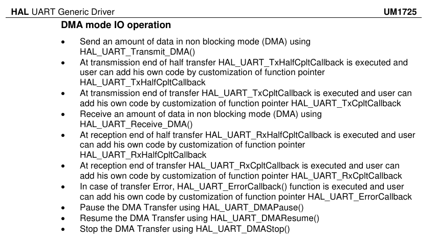 Whenever I run the code in debugging mode, I see the first time I attemp to send the string, it works ok and sends the string, but inside the DMA IRQ handler, it calls TxHalfCpltCallback and not TxCpltCallback and also UART gState will remain in BUSY mode so I can't use it to transmit no more string.