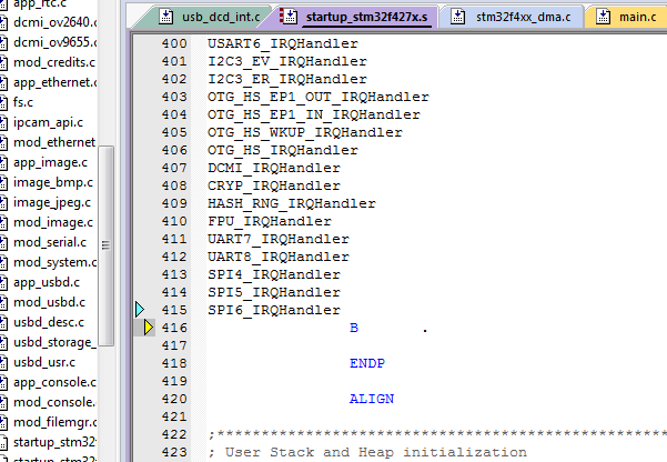 I used the demo code from STM32F429 Discover, do some modification, and add it to my code on the STM32F427 Demo board. I found that when I plug in the USB cable, it is trapped into