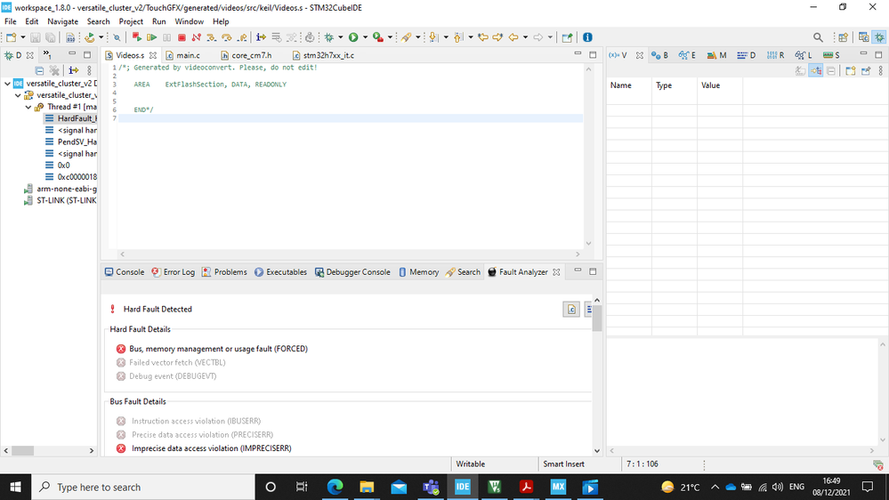 after generating of code by cubemx+touchgfx i got some error related to videos.s file