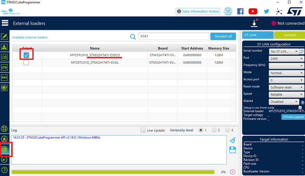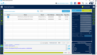 PS: before uploading the hex file related to the CM7, make sure you selected the external flash loader for this board: