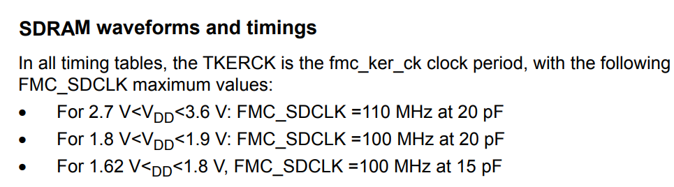 But the max FMC_SDCLK we can run SDRAM depends on the VDD and on the capacitor value: