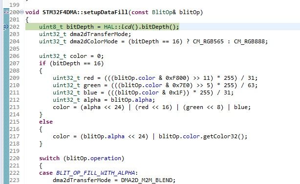 @Flemming Gram CHRISTENSEN When I install ChromART, the program enters the functions STM32F4DMA :: setupDataFill (const BlitOp & blitOp) and STM32F4DMA :: setupDataCopy (const BlitOp & blitOp). But I get "No source available for ..." errors about some functions. I have encountered problems with pictures. But my main problem is how do I know if ChromART is running successfully?