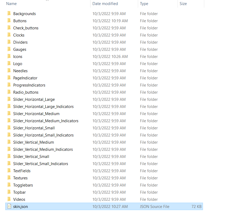 3- Open you new folder, and edit the skin.json file. You'll see on the first line, an entry called "Name". Replace the value with your new skin name :