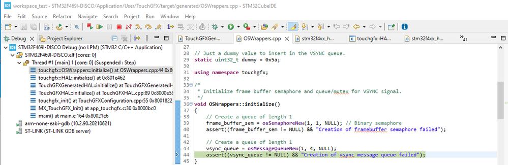 I watch uwTick variable up until the HAL::initialize() call, and it is updating. It is no longer updating in the Hal_GetTick function during touchscreen initialization.