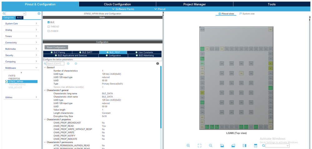 I have confirmed that the SWD pins are working and Code is Debugging ok.I have also set up HSEM, IPCC, RCC, RTC, RF, STM32_WPAN required but I can't detect the Bluetooth.