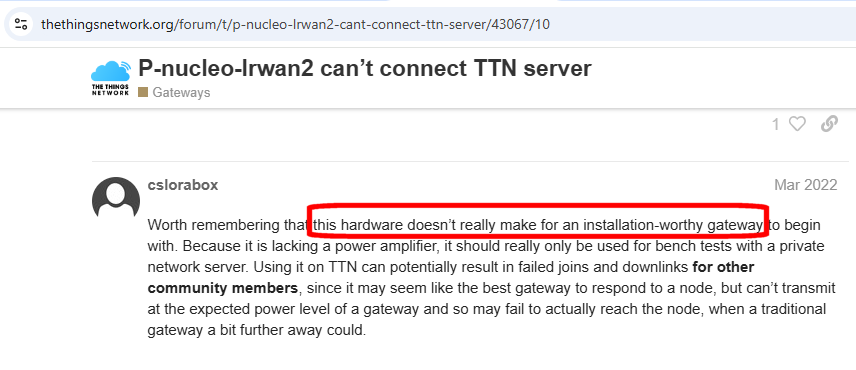 Note that the P-NUCLEO-LRWAN2 gateway is not suitable for public deployment:
