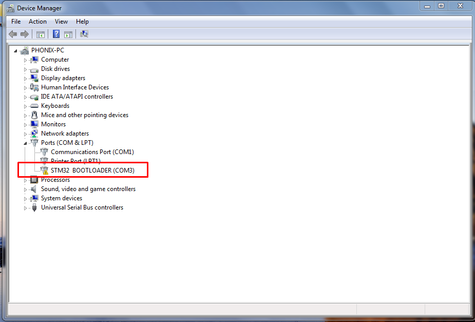 when i connect this module its showing in device manages as "STM device in DFU mode".
